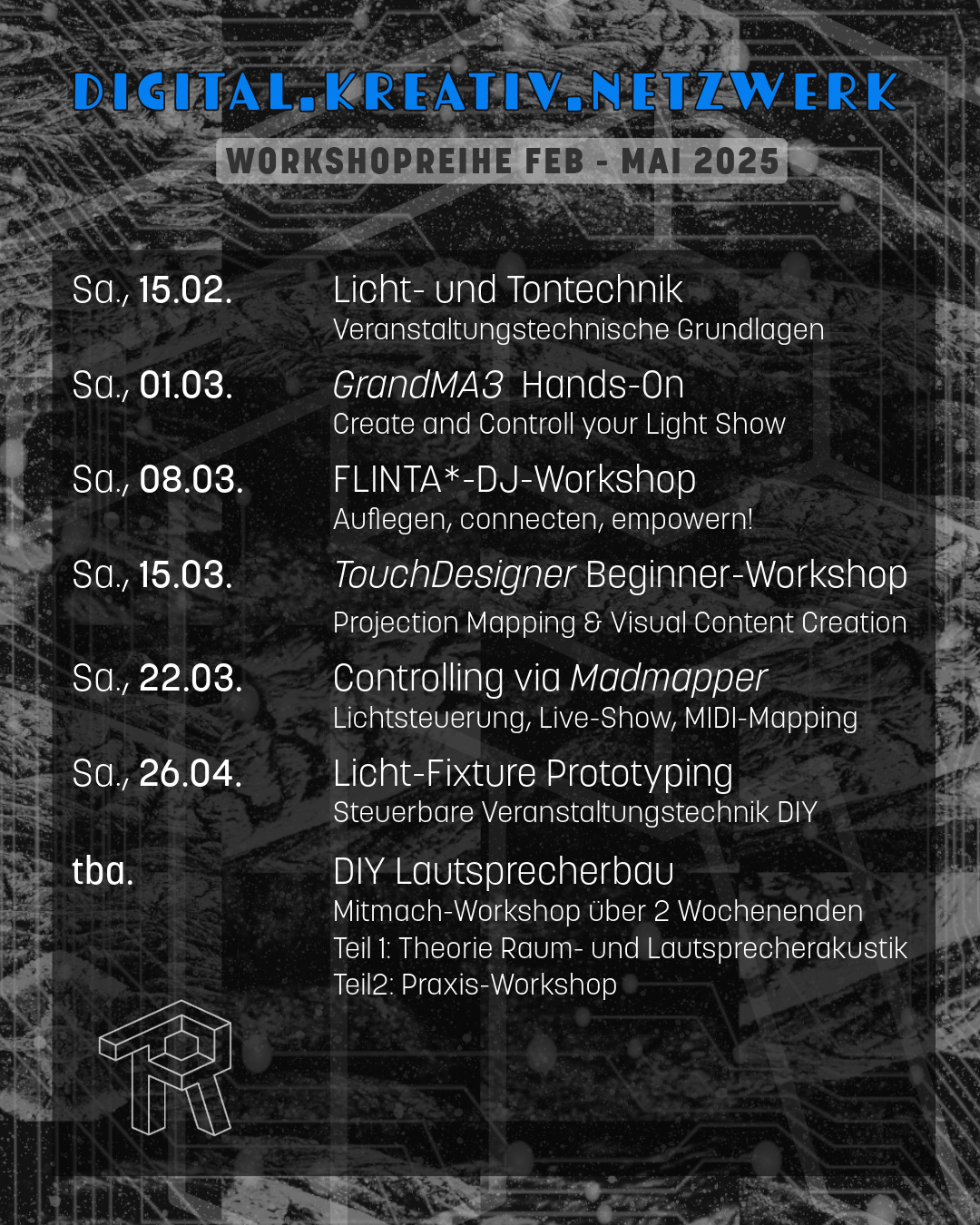 Den Auftakt bildet ein erster Workshop am kommenden Wochenende zum Thema Licht- und Tontechnik. Hier lernen die Teilnehmenden die Grundlagen, die für die erfolgreiche Umsetzung von Kulturveranstaltungen nötig sind.